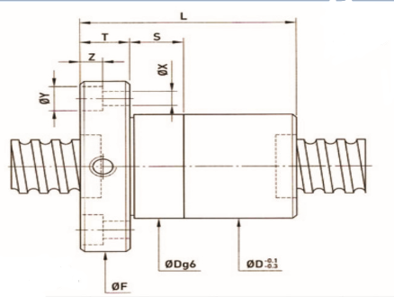 | 型號(hào) | 規(guī)格 公稱外徑 | 導(dǎo)程 | 珠徑 | PCD | 根徑 | 珠卷數(shù) | 剛性Kgf/um K | 動(dòng)負(fù)荷 | 靜負(fù)荷 | 螺帽 | 法蘭 | 法蘭孔 | 接觸面長(zhǎng) | ||||||