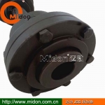 2、罩殼表面有個(gè)M6和M8是注油孔,用于檢修注油之用。安裝時(shí)應(yīng)確保鑼絲定位在法蘭溝槽中,才能蓋實(shí)整個(gè)聯(lián)軸器。
