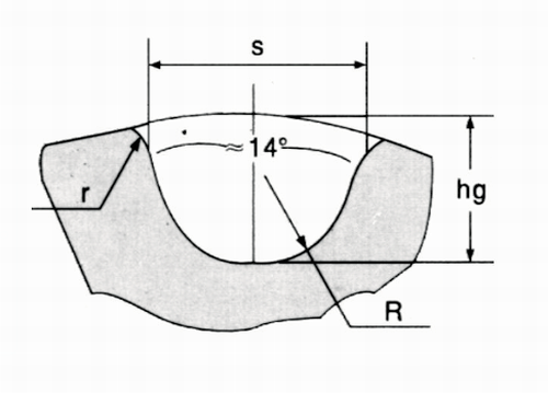 | 節(jié)距型號(hào)TYPE | 節(jié)距 itch | 齒高h(yuǎn)g Tooth height | 底圓半徑R Root circle radius | 齒槽寬S Groove width | 齒頂圓半徑r Top circle radius | 齒形角angle | 最大功率Max(kw) | 最大轉(zhuǎn)速M(fèi)ax rpm | 擋邊厚 F Thick | 緣邊高 F Height |